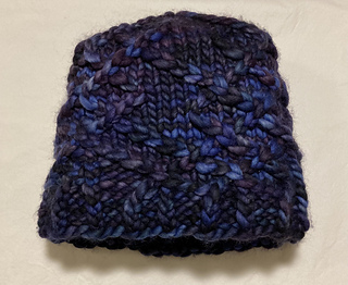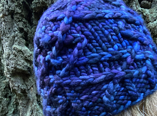 The Surprise Twist Hat is knit from the bottom up using traveling twisted stitches to form an engaging pattern that highlights the rich colors of this wonderfully soft extra bulky yarn. Using three repeats of a charted pattern, a single skein works up quickly into a structured yet cozy hat.