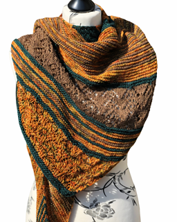 The shawl was inspired by the sights and sounds of the woods during the beautiful autumn season.