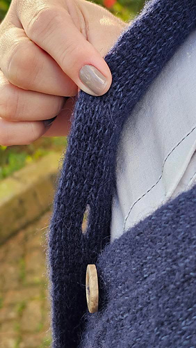 4-5 buttons (Ø = 18 mm), stitch markers, stitch holders / leftover yarn, tapestry needle, scissors.