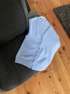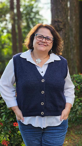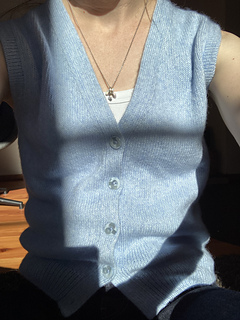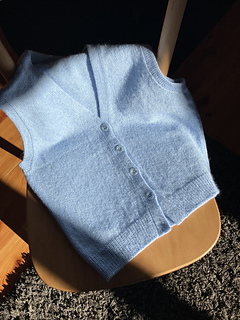 The vest is designed to be worn with 7-12 cm 2.75 - 4.75” of positive ease around the bust. For example: If your bust circumference is 86 cm 33.75”, you might choose size S with a finished garment measurement of 98 cm 38.5”.