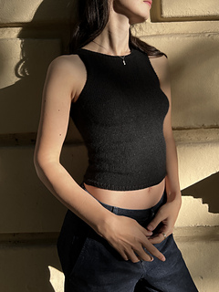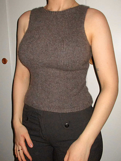 The swan top is a form-fitted negative ease top. It is worked top down seamlessly, and includes made to measure waist shaping with decreases and increases, and three different sizes of short row bust shaping. The armhole edge is knit as you go and the neckband added at the end. The swan top is the perfect basic tank top to