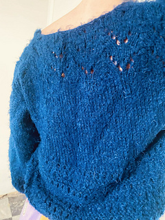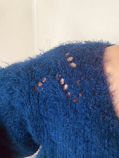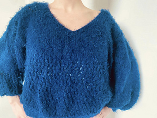 This is a very beautiful sweater with a V-decorative neck. It goes well with jeans, for everyday wear, it is warm and comfortable. The sleeves are wide and create a beautiful style.