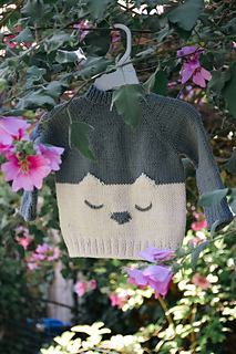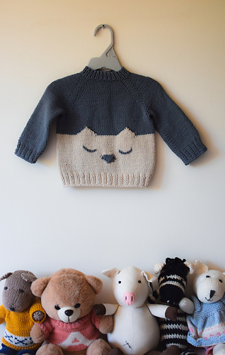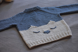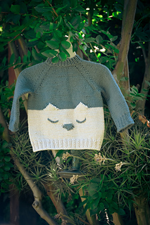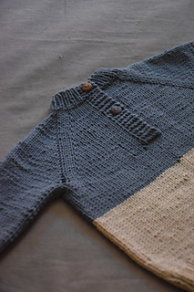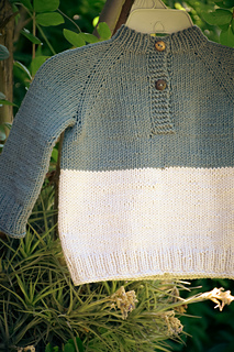 SWEATER TEO is a top-down sweater worked in the round, beginning with raglan increases. The sample shown is size 3 Months.