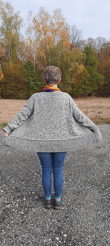The sweater was designed for DK weight yarn and a standard gauge for this type of yarn. This gives you many options for choosing the proper yarn, both aesthetically and economically. You can make a cardigan from a single thread of DK weight, choosing the proper one for you in every aspect. You can also knit a sweater from fingering yarn held together with a lace weight, e.g. mohair yarn. You can choose a more expensive hand-dyed base yarn, as well as a cheaper, factory-made yarn. Sweet Escape looks beautiful in every option, which is perfectly shown by the versions knitted by my wonderful test knitters.