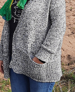 Sweet Escape is a staple and minimalistic design, but I have incorporated a few tasty details into it, which will make it more enjoyable to knit, and will make the sweater stand out from other similar projects. The sweater has an original and modern construction with shoulders falling back. I-cord finishes on the shoulder line, at the cuffs, bottom rib and front band attracts attention, and the cardigan looks neat and polished with them. An additional advantage of the sweater are the pockets hidden in the bottom rib. Cleverly hidden and large enough to fit something little, keys or smartphone.