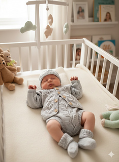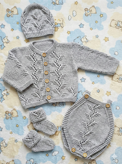 The Beanie Hat and little socks are is also quick to knit up and complete this beautiful little set.