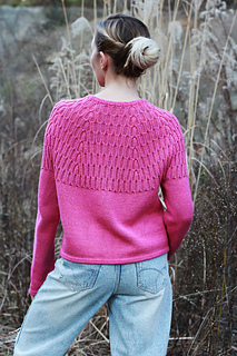 This pattern is a Round Yoke sweater worked in a pattern based on 2x2 ribbing.
