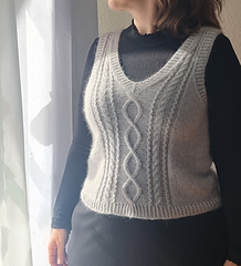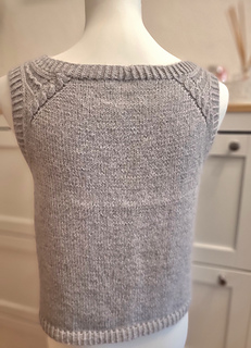 The Sylva Slipover is worked seamlessly from the top down with a European shoulder construction. The back is worked flat in rows first, with a cable detail along the shoulder line. Stitches for the shoulders are then picked up and worked one after the other until they are joined. Once the front is connected to the back, the slipover is worked in the round. The hem is finished in twisted rib. Stitches are then picked up around the armholes and neckline and also worked in twisted rib.