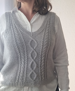 Es kann auch mit jedem anderen Garn gestrickt werden, sofern die Maschenprobe erreicht wird. Der angegebene Garnverbrauch ist ausgerichtet für die obigen Maße ohne Taillierung. Wenn du deinen Slipover länger oder kürzer stricken möchtest, bedenke bitte, dass dies den Garnverbrauch beeinflusst.