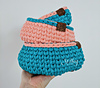 – It is recommended to finish the small basket first, medium basket second, and large basket third. Since t-shirt yarn can vary in thickness this will allow you to gauge the number of rounds you need to work on the base (add or remove an increase round) and sides (add or remove rounds) to ensure the baskets nest properly.