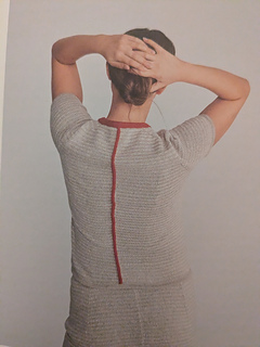 T-SHIRTEN är en klassisk modell med rundad hals, sadelaxel och prydliga kanter. Den stickas uppifrån och ner och mitt bak lyfts en maska som utgör basen för en dekorativ i-cord. Halsringningen formas med german short rows och det görs ökningar längs sadelaxeln för att forma fram- och bakstycke. Därefter byter ökningarna riktning för att forma ärmarna, och sedan formas återigen fram- och bakstycke med ökningar längs ärmhålen. Maskorna för ärmarna sätts sedan på en maskvajer, samtidigt som det läggs upp maskor för ärmhålen. Bålen stickas därefter enligt önskvärd passform och maskas av vid önskad längd. Ärmarna stickas till önskad längd. Avslutningsvis görs i-corden mitt bak, och det plockas upp maskor längs T-SHIRTENS halsringning, ärmslut och nederkant för att sticka de dekorativa kanterna.
