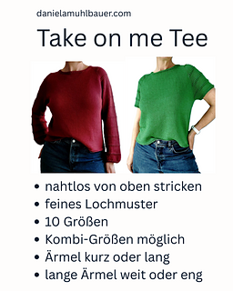 Whether you choose the breezy short-sleeved version or the cozy long-sleeved balloon style, the Take on me Tee is a rewarding project for knitters looking for a modern, customizable garment.