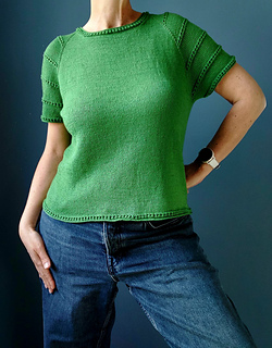 Das Take on Me Tee ist ein nahtlos gestricktes Raglanshirt mit feinem Lochmuster. Es wird von oben nach unten gearbeitet und kommt ganz ohne Nähte aus.