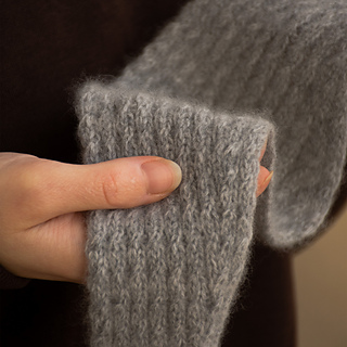 The TAKT scarf is worked with a single strand of superlight DK weight yarn.