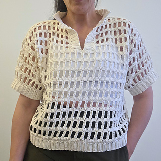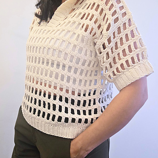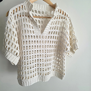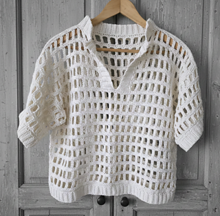 Modern style meets handmade. The geometric ‘windowpane’ stitch creates a lightweight fabric that adds visual depth to the classic crochet look. Oversized Cut, relaxed sleeves and classic collar makes this pullover perfect to pair with high waisted trousers or denim shorts.