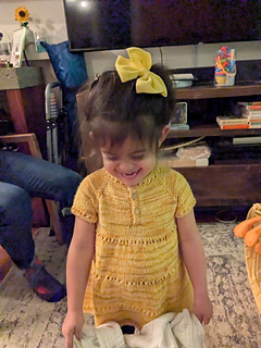 Top-down construction, with a fitted chest, A-line skirt.