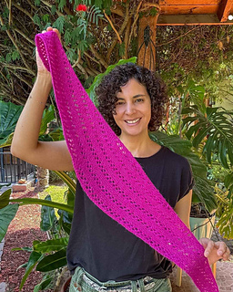 La bufanda Tamar se teje en plano, comenzando desde el centro y creciendo hacia los extremos. Su tamaño es ajustable, por lo que puedes tejerla tan larga como desees. Es un proyecto ideal para aprovechar restos de hilado: con pocos metros puedes lograr una bufanda que da una vuelta al cuello, o bien alargarla para utilizar todo el hilado que tengas disponible.