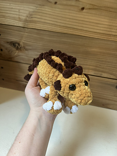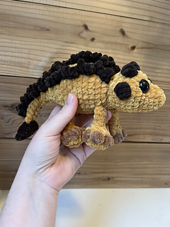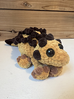 This crochet pattern is a PDF download of Tanky the ankylosaurus