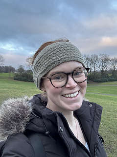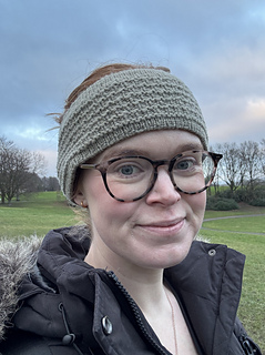 The headband has been graded to fit with approximately 13% negative ease, meaning that the finished headband will be approximately 13% smaller than the intended wearer’s head circumference to ensure a snug fit. This translates to approximately 5-8 cm (2-3.25 in) negative ease depending on the size chosen.