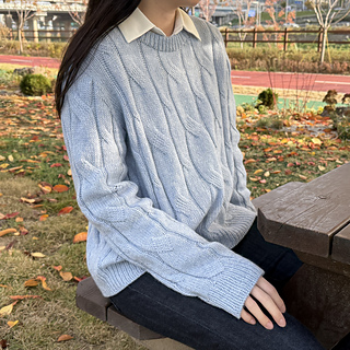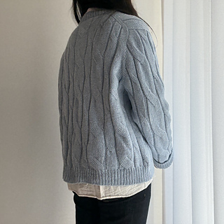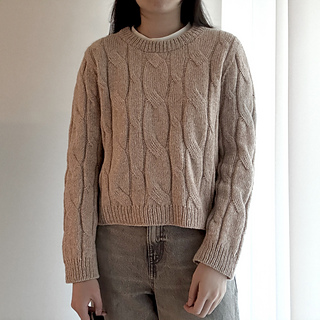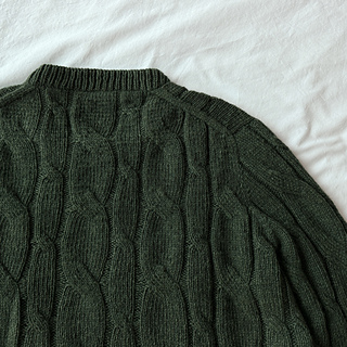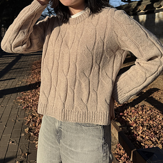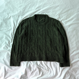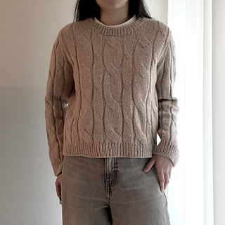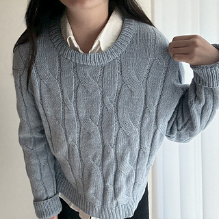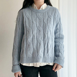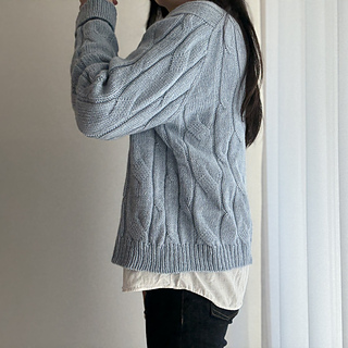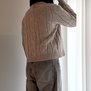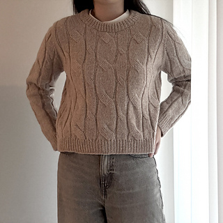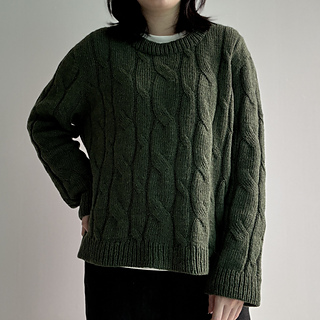 Designed with approximately 25–30 cm (10–12 in) of positive ease. The sweater is most flattering when worn as an oversized fit.