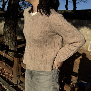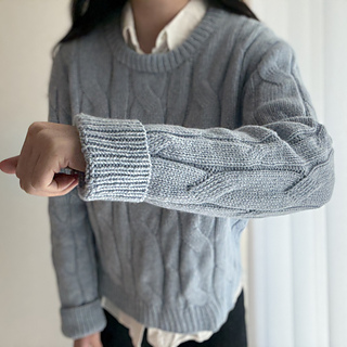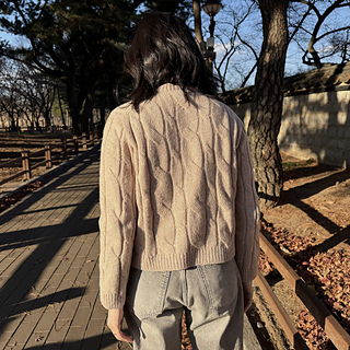 • 먼저 뒤판 상단을 뜨고 어깨의 코를 주워 양쪽 어깨를 만든 후 요크를 연결합니다. 앞판을 뜨면서 앞목을 연결한 후 소매를 분리해 원통 뜨기로 몸통을 완성합니다. 소매는 암홀에서 코를 주워 원통으로 뜨고, 라운드 넥의 코를 주워 겹단 고무단을 뜬 후 완성합니다