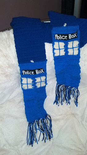 Hi all, I wrote this pattern after being unable to find a free pattern for a Doctor Who TARDIS scarf. Enjoy!