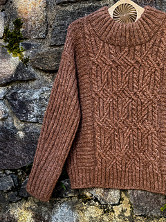 The idea for this pullover was born when I came across a wonderfully intricate cable pattern in Norah Gaughan’s Knitted Cable Sourcebook. Seeing the depth and movement of those stitches inspired me to design a sweater where cables could play the leading role – not just as decoration, but as the structural heart of the garment.