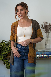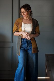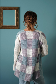 Tartan is a lightweight cardigan that uses three different colors to create a beautiful plaid pattern. The pattern is created using a method called tapestry crochet, which is a very simple way to introduce more complicated colorwork. This cardigan is constructed by making three flat panels, which are sewn together, and then the sleeves are worked into the body.