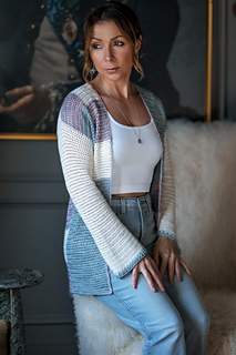 - The cardigan is made by creating three panels, which are then sewn together, leaving a space for armholes. The sleeves are then crocheted onto the armholes.