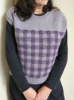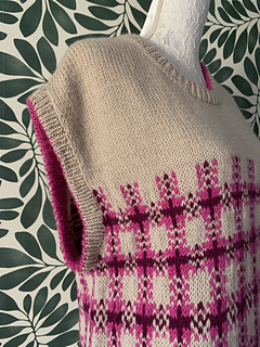 Tartan est un modèle sans manche avec un motif vintage à base de carreaux qui permet une grande variété de couleurs. Le pull se tricote d’une seule pièce de haut en bas. Le dos et le devant sont d’abord tricotés séparément en allers retours puis le corps en circulaire A la fin des mailles sont relevées pour les bords côtes. Le haut du pull est uni et le reste en jacquard. Je vous propose 2 versions, une en jacquard bicolore et une autre en jacquard tricolore pour des tricoteuses un peu plus expérimentées. A vous de choisir selon votre niveau. pour un tricot sans stress, les 2 versions étant très jolies.