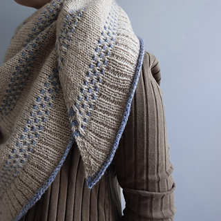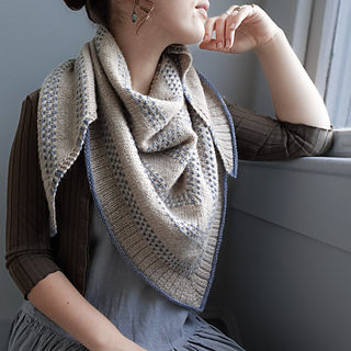 Calming colors, rhythmic slip-stitch sections , restful stockinette, a classic, functional triangular shape, understated warmth…