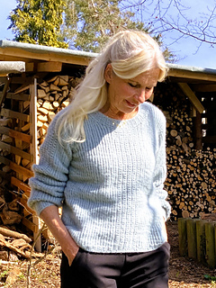 Cashmere Sweater in hellmingrün (Farbe 139) „Soffio Cashmere“ von Laines du Nord (LL: 70 m/25 g) 65% Merino ultrafine 16 Micron, 30% Cashmere, 5 % Nylon. Garnverbrauch für Größe S: 275 g, einfach verstrickt