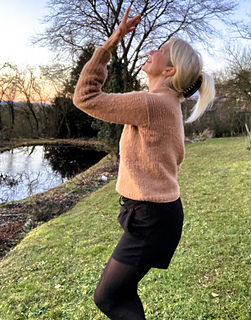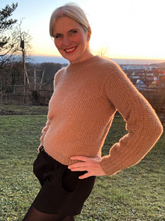 Cashmere Sweater in mocha mousse (Farbe 139) „Cashmere light“ von Lang Yarns (LL: 85 m/25 g) 88% Cashmere, 12% Polyamid. Garnverbrauch für Größe S: 250g, einfach verstrickt