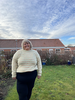 Strikkefasthed: 19 m x 30 p i glatstrikning på pind 4 mm = 10 x 10 cm