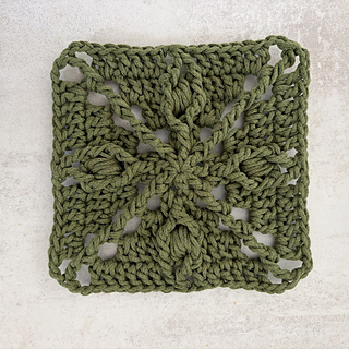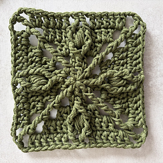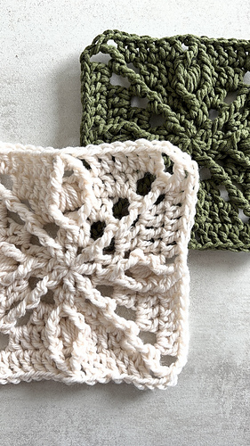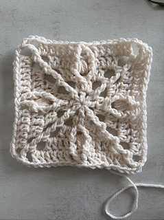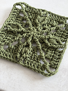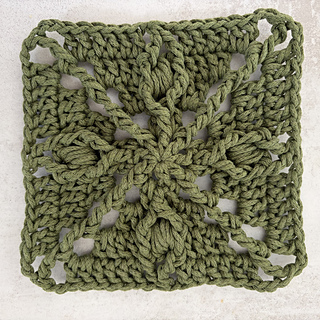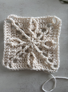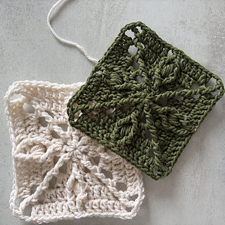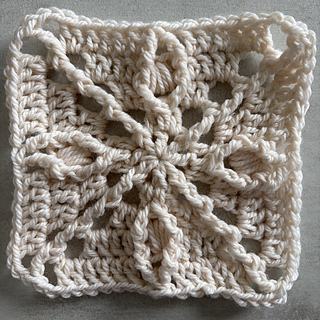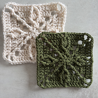 A modern take on the classic granny square, featuring delicate cable stitches that form subtle teardrop shapes for a soft, textured look.