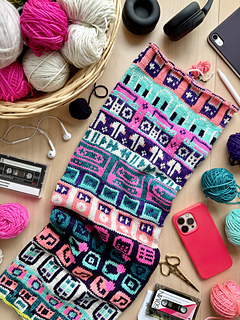 THE TECH DOODLE is inspired by the classic and current gadgets that we all love (and sometimes can’t live without!). From music players to computers, games to apps, this set is perfect for any techie looking to combine their love of shiny gadgets with the ancient art of knitting!