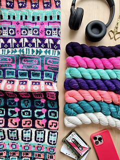 Sample uses Fangirl Fibers DK Weight, 100% Superwash Merino, 100 g skeins, 231 yards 200 m in Video Killed the Radio Star.