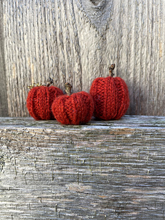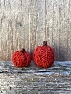 These pumpkins are between 5/8” and 1” tall depending on how much stuffing you use and how tight you pull the tail end through the middle. Just like real pumpkins they easily adjust to squashed, round, or oblong.