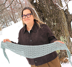The Tegw scarf — meaning “Wave on the water” in Abenaki (pronounced tegwan or tekwan) — is a piece of exquisite delicacy. Inspired by the fluid and soothing movement of water, this design features a light, airy lace that is perfect for warmer days.