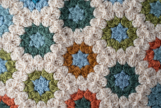 - Trend-forward look inspired by granny hexagon and floral motifs