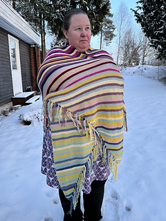 Temperature shawl knitted over a whole year. The colors used are based on the temperature for each week during the year.