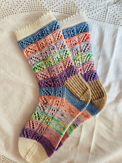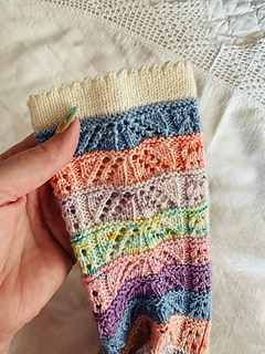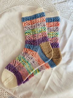 This lacey sock pattern is originally being released with the 2026 Yarnbrary Holy Week Easter countdown box.