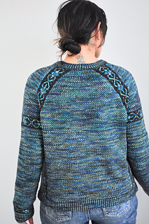 - There is 6 rows of stranded colorwork worked flat to shape the Front neck at the very beginning of the sweater
