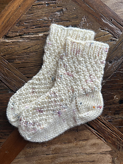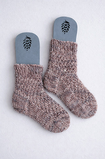 These socks are worked in the round from the cuff down and feature a classic heel flap and gusset construction.