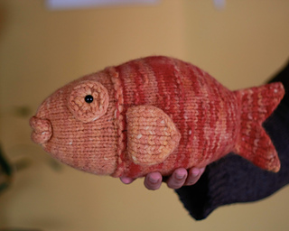 The eyes are knitted separately and then sewn onto the fish’s head.