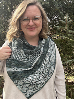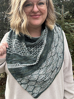 The Tesserae Shawl is a textured crochet shawl pattern that keeps your stitches interesting from start to finish. The shawl is worked sideways, increasing gradually to form a triangular shape with a large wingspan that drapes comfortably around the shoulders or wraps easily as a scarf. The colorwork is simple and worked row by row, making this design approachable for adventurous beginners while still enjoyable and satisfying for more seasoned crocheters.