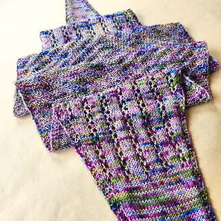 Tessora is a long, elegant shawl designed to showcase a single skein in a quick, enjoyable, and satisfying knit.