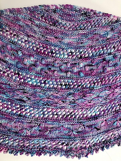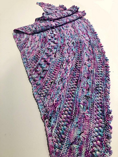 My shawl was knit with Baah Yarns La Jolla, but you can use any fingering weight yarn that will block well. I enjoy the look of a variegated yarn, but a solid or tonal would also show off the texture quite nicely.