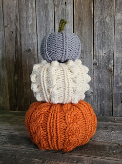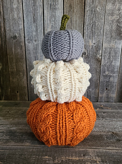 LOOM Knitting Pattern ♥ The Textured Pumpkin Stack is made of 3 pumpkins with a mix of textures. The pumpkins are worked in the round from the bottom up. You will need poly-fill or your favorite stuffing and your choice of stem. Make all three in matching yarn or choose 3 coordinating colors. Enjoy stacking your pumpkins or display them separately. A chart and written instructions are included.