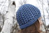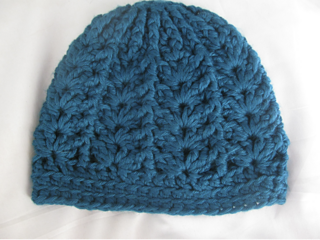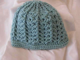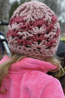 This is a very versatile hat pattern that can be fitted from baby to adult. There is a single strand version (shown in periwinkle and robin’s egg blue) or a bulky two strand version (shown in teal and two tone pink) that works up very quickly. Instructions are provided to adapt the pattern into a bun hat. You can also make a crown for children (two strands of yarn).
